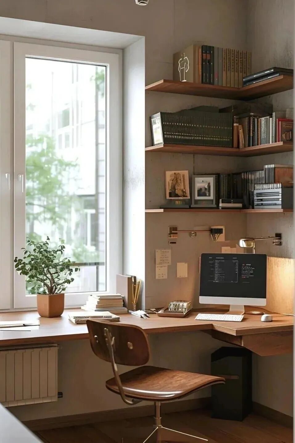 利用转角、飘窗、阳台等“鸡肋空间”,定制专属“微书房”。