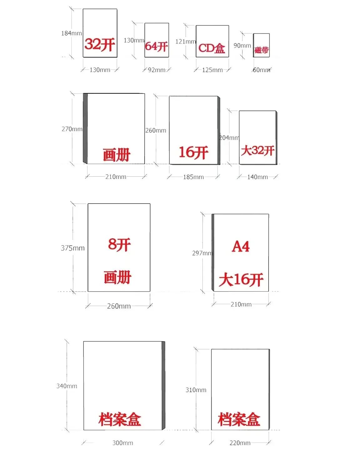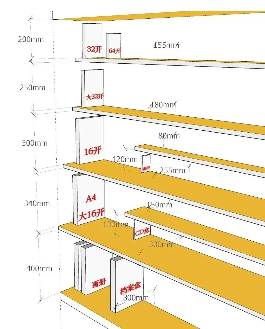 ▪ 32开以上的书籍:高度宜为250mm,深度宜为180mm;